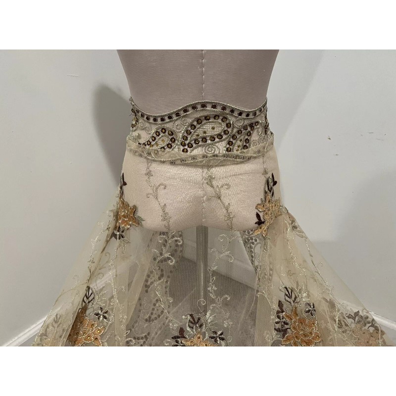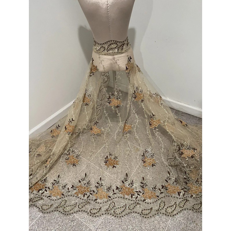 wowfabric4less123 Brown Gold Embroidery Rhinestones Velvet Mesh Fabric 50” Width 1 Yard