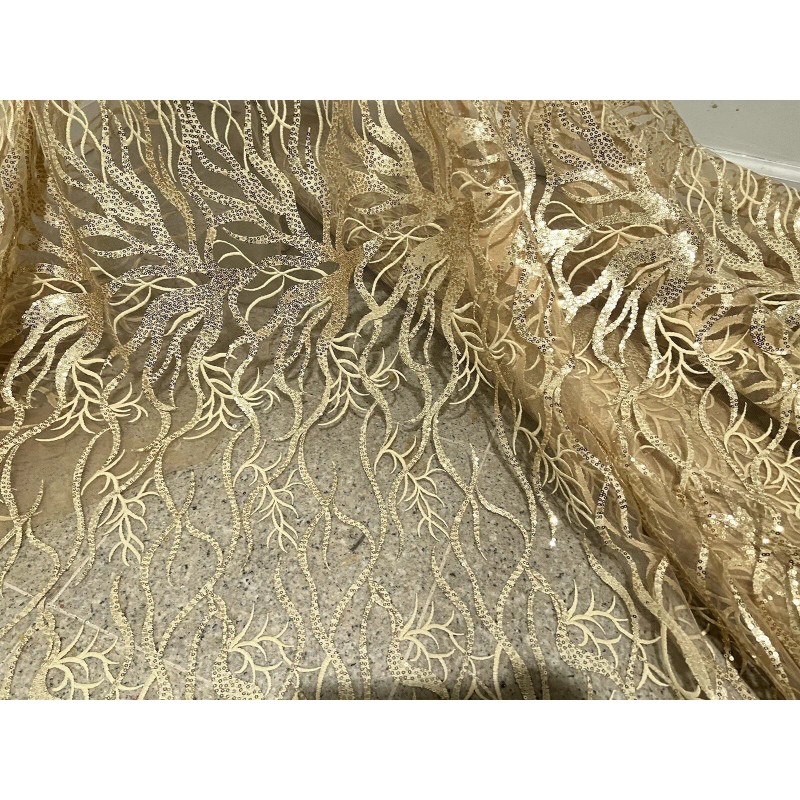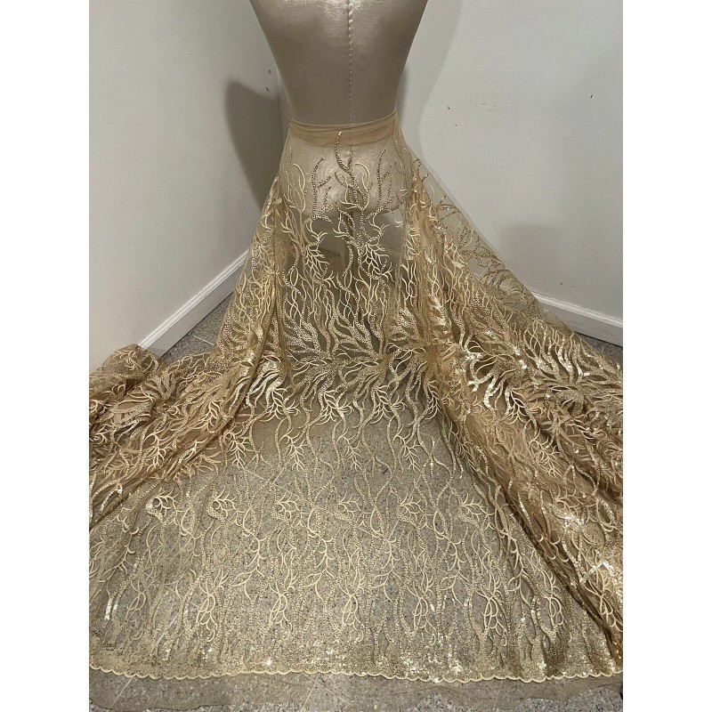 wowfabric4less123 GOLD Embroidery SEQUINS Lace Fabric 50” Width Sold By The Yard