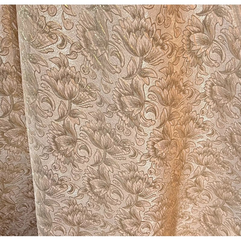 Wowfabric4less123 Peach Gold Floral Metallic Brocade Fabric 50” Width Sold By The Yard