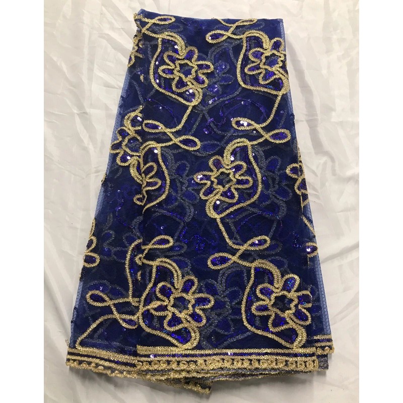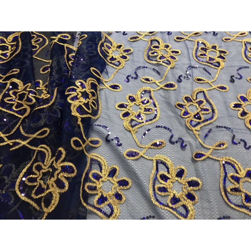 wowfabric4less123 Royal Blue Gold Multicolor Sequins embroidery Lace Fabric 50” Width 1 Yard