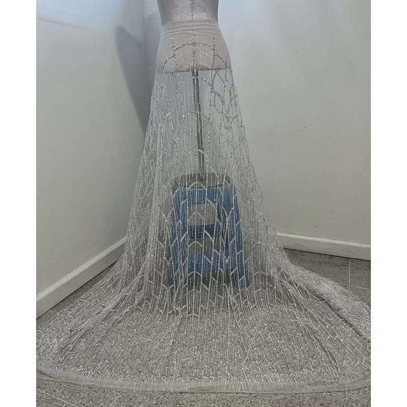 wowfabric4less123 Silver White Rhinestones Sprinkle Glitter lace fabric 50" width Sold By The Yard