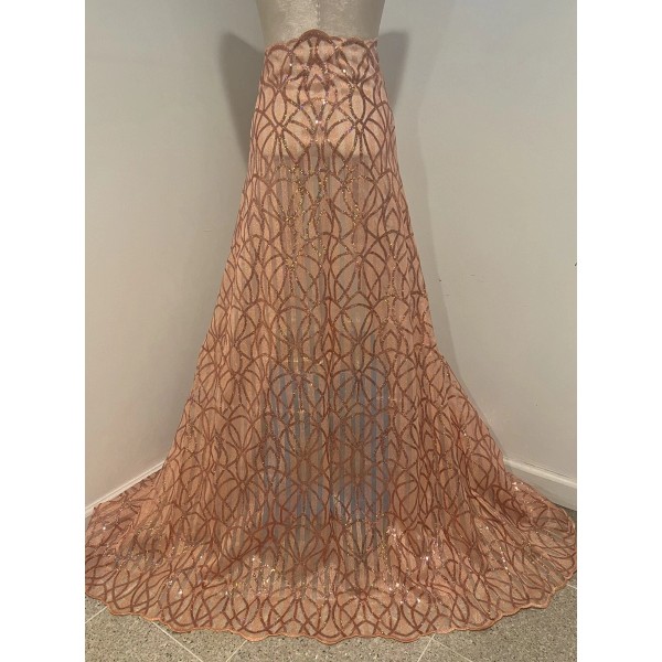 Craft your next project with the Sold By The Yard Peach Iridescent Sequins Embroidery Lace Fabric, a versatile and shimmering addition to your crafting arsenal. At 50 inches wide, this synthetic mesh lace fabric is ideal for a variety of applications, from apparel such as dresses and dance/sportswear to accessories like bags, hats, and gloves. The embroidered sequins and iridescent pattern add a touch of elegance and sparkle, making it perfect for wedding decorations, stage costumes, and crafting enthusiasts.