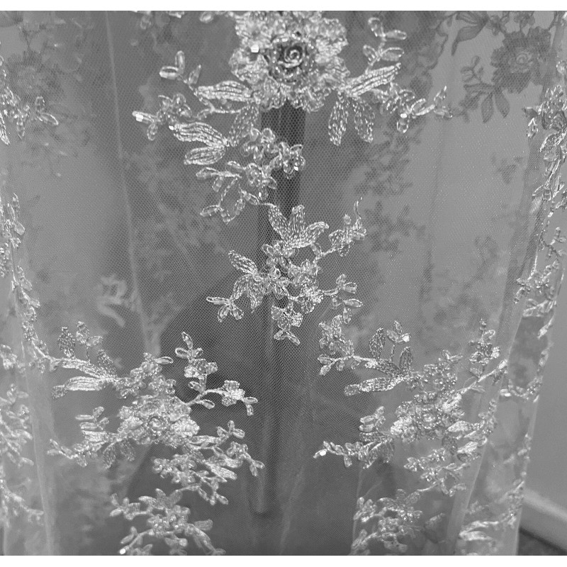 This beaded lace fabric is perfect for adding a touch of elegance to your next project. With intricate floral embroidery, sequins, and antique/vintage features, this medium-weight fabric is sure to make a statement. It is sold by the yard with a width of 46'' to 60''.