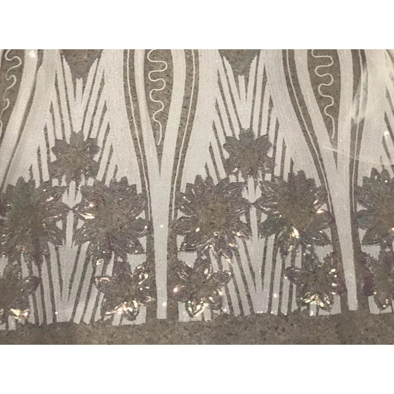 wowfabric4less123 White Iridescent stretch sequins Lace fabric 50” Width 1 Yard