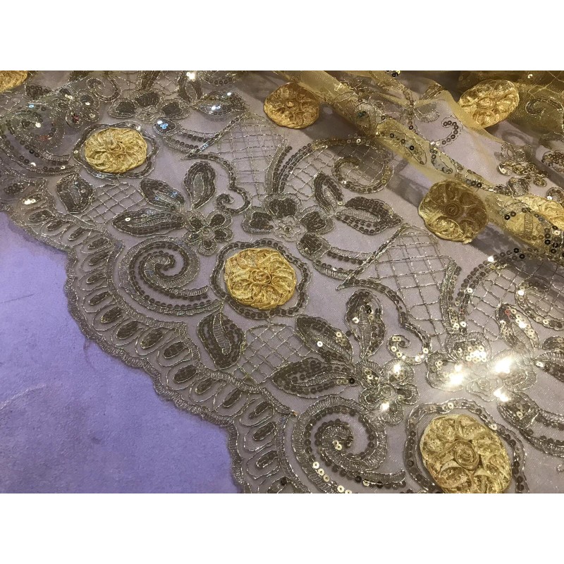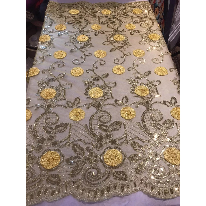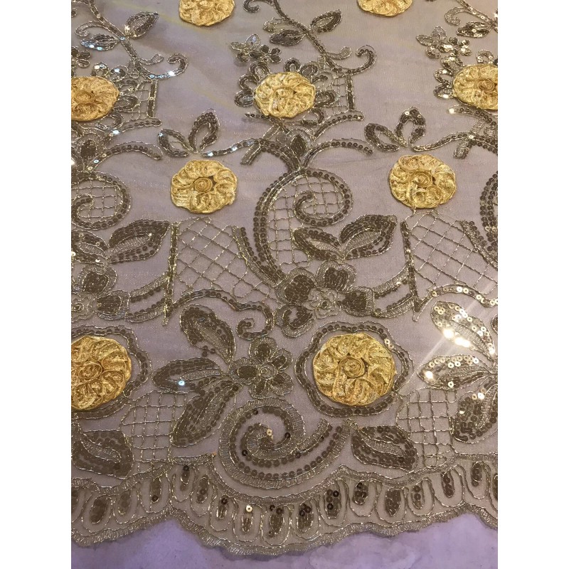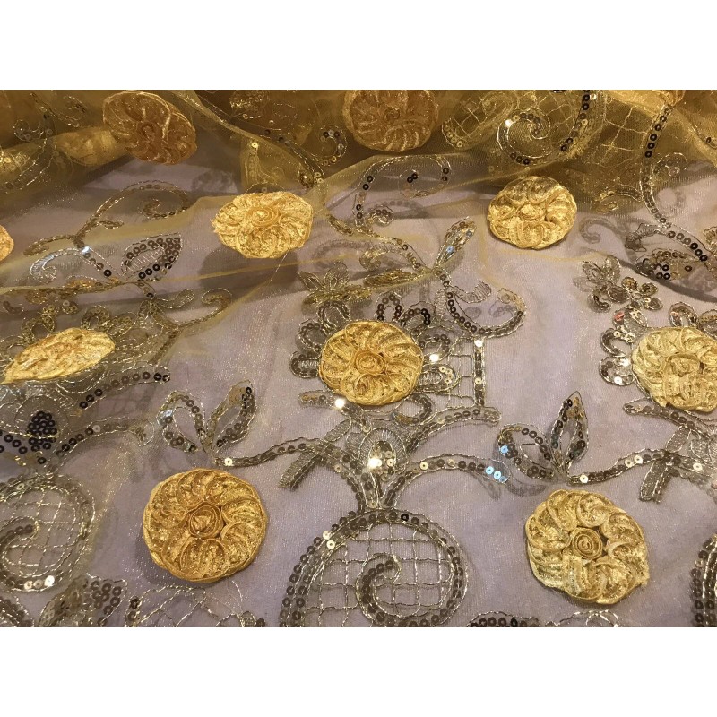 wowfabric4less123 Yellow Gold Sequins embroidery Lace Fabric 50” Width Sold By The Yard