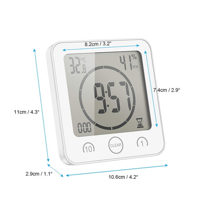 • Easy to Set Timer - Timer function makes this clock more useful, touch button control, place this slim digital suction cup timer with thermometer and hygrometer function in your bathroom. You'll know when it's time to speed things up while showering or setting makeup.