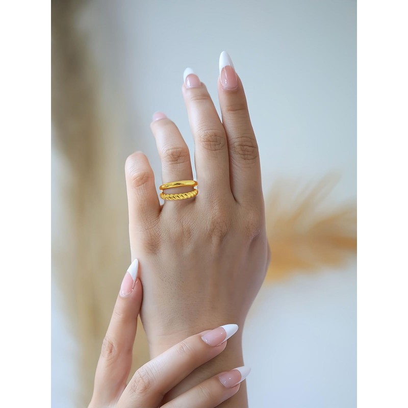 The versatility of these gold double layer rings is impressive. They can be worn as a thumb ring, eternity ring, or even a statement ring, adding a touch of glamour to any look.
