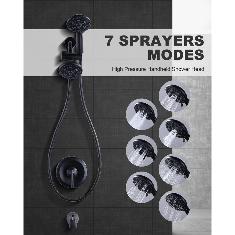 WOWOW Matte Black Shower Faucet Set with Tub Spout and 7- Mode 2-in-1 Dual Handheld Shower Head, Shower Trim Kit Single Handle Shower Combo Set Wall Mounted (Valve Included)