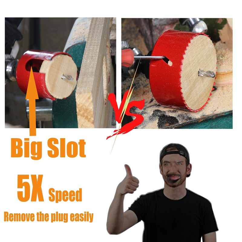 - Big Slot: It’s big slot and special teeth are to remove the plug easily. Up to 5 times faster than standard hole saw.
