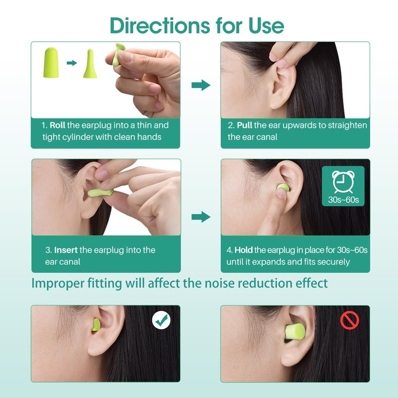 • Convenient 60 Pairs The package contains numerous earplugs with the reusable feature that can protect your hearing for a long time. Earplugs should be kept clean and undamaged