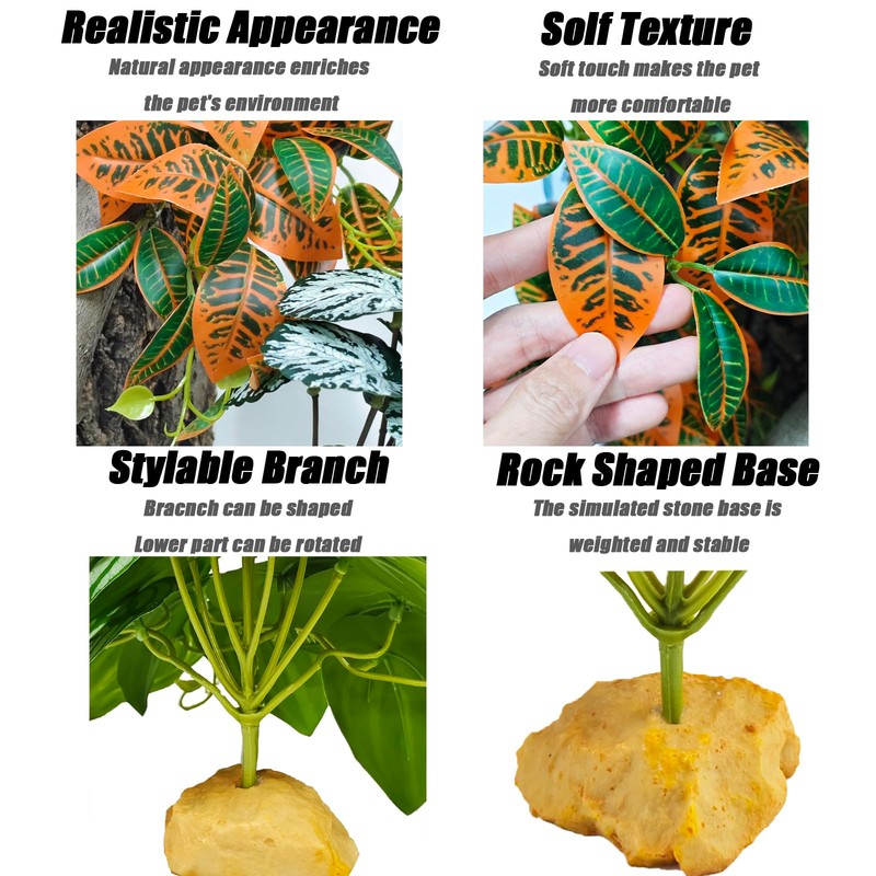 - TERRARIUM FAKE PLANTS - This is a really realistic, thick and lush fake plants for reptiles that looks real. It is very beautiful, spreads well, gets a lot of space, provides plenty of branches of the reptiles to hide in.
