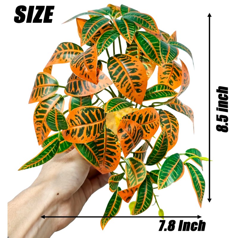 Woyrise Reptile Plants for Terrarium Decor, Ball Python Tank Accessories fit Bearded Dragon Crested Leopard Gecko Lizard Chameleon Snake Frog Tortoise Hermit Crab - Fake Codiaeum Variegatum