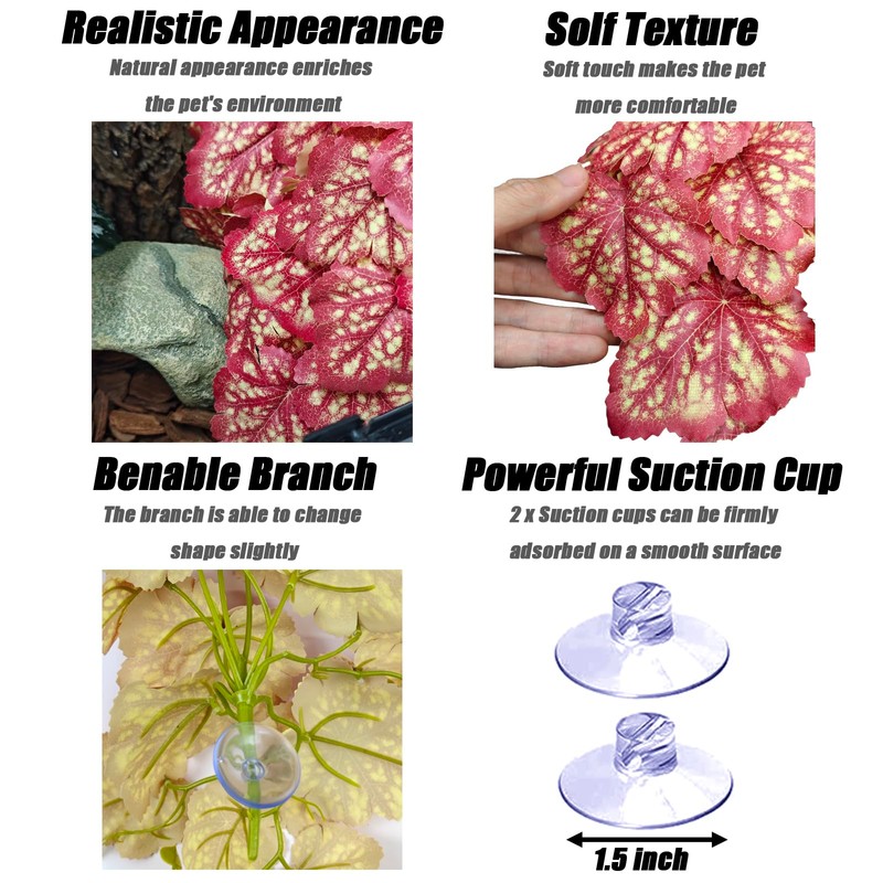 - Advantage - Our artificial hanging plant has a more realistic appearance, can decorate your reptile tank well, the powerful suction cup allows it to be placed anywhere, does not need sunlight and moisture, is easy to clean, and provides a place for your pet to climb, hide and play