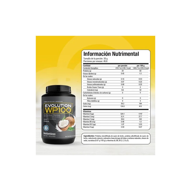 Pensamos en ti y en lo importante que es consumir productos de alta calidad, WP100 es una proteína aislada de suero de leche microfiltrada y ultrafiltrada que le caerá bien a tu cuerpo por lo ligera que es, te ayudará a lograr tus metas y objetivos mientras disfrutas de su delicioso sabor coco.