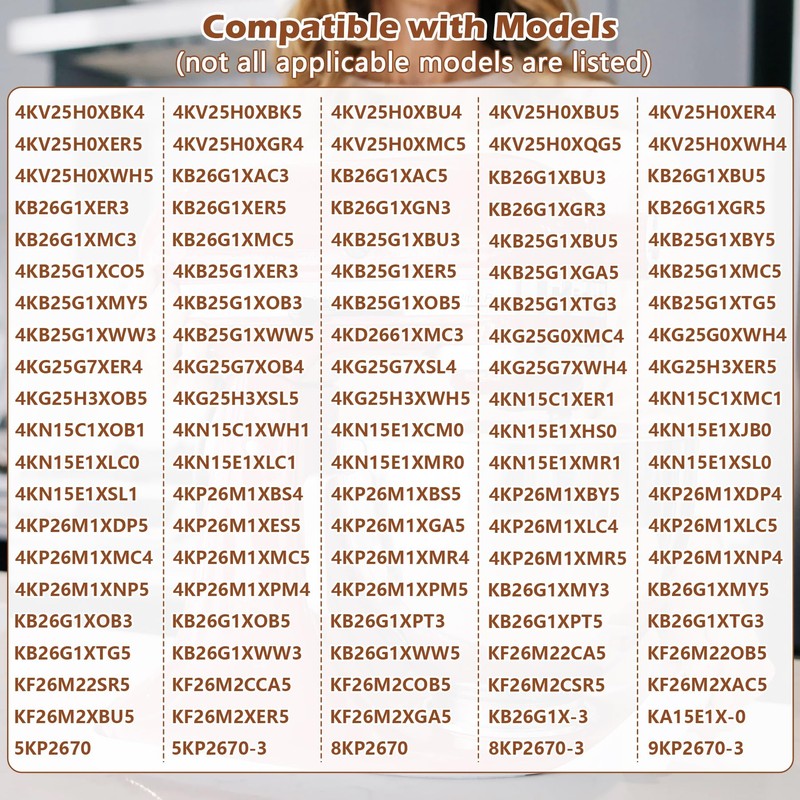 • Fits for Following Models: 4KP26M1XMR5 4KP26M1XNP4 4KP26M1XNP5 4KP26M1XPM4 4KP26M1XPM5 KB26G1XMY3 KB26G1XMY5 KB26G1XOB3 KB26G1XOB5 KB26G1XPT3 KB26G1XPT5 KB26G1XTG3 KB26G1XTG5 KB26G1XWW3 KB26G1XWW5 KD2661 KD2661-3 KD2661XMC3 KF26M22CA5 KF26M22OB5 KF26M22SR5 KF26M2CCA5 KF26M2COB5 KF26M2CSR5 KF26M2XAC5 KF26M2XBU5 KF26M2XER5 KF26M2XGA5 KF26M2XGC5 KF26M2XGR5 KF26M2XMY5 KF26M2XNP5 KF26M2XOB5 KF26M2XPM5, etc. Not all applicable models are listed above. Please check your model number before purchasing