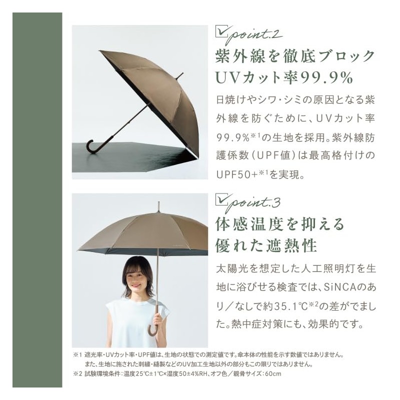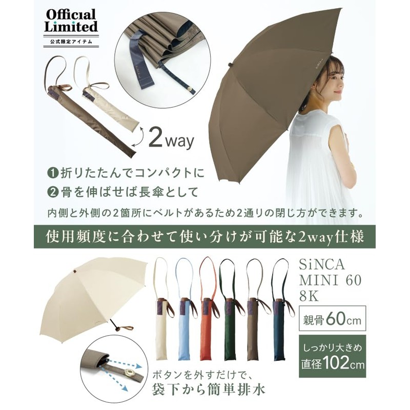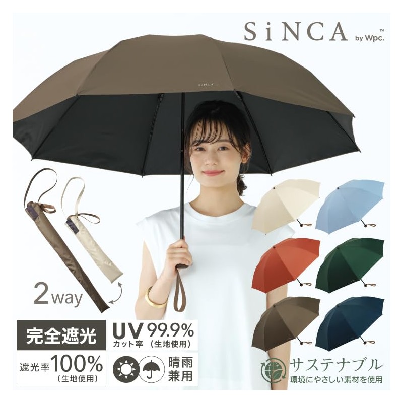 Wpc. SIP-002-102-WS Umbrella, 60 Ribs, Recycled Materials, Parasol, SiNCA MINI 60, 8K Brown, 100% Light Blocking, 99.9% UV Protection, Heat Shield, Rain or Rain, Windproof, 15m/s Commuting to Work or