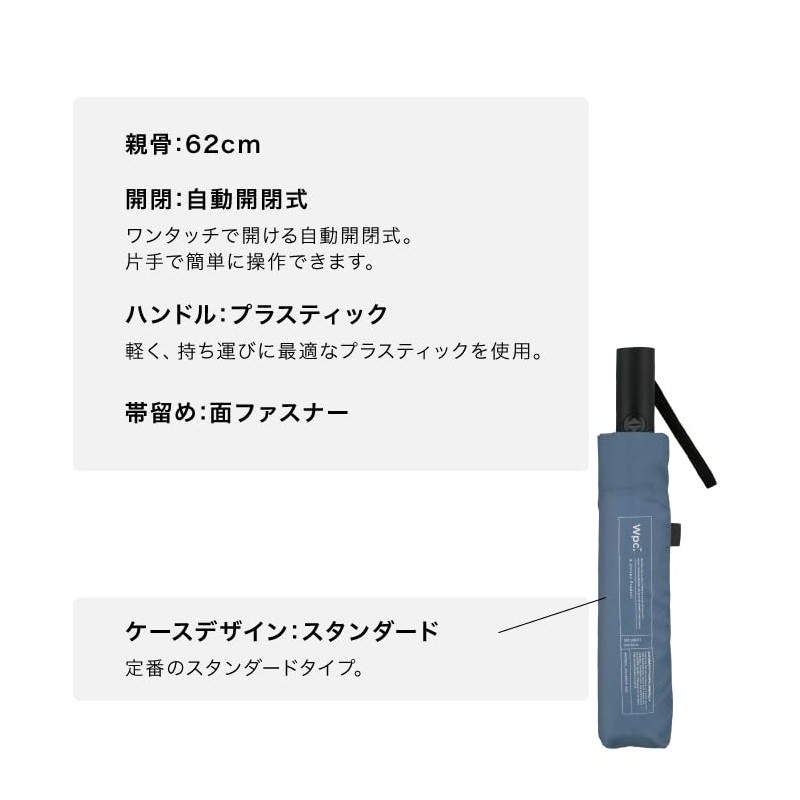 Wpc. UX011-001-002 Auto Open and Close Folding Umbrella, Navy, Rain Umbrella, For Rain or Shine, Men's, Ribs, 24.4 inches (62 cm), Large, Men and Women, Simple, Solid, Stylish, Basic