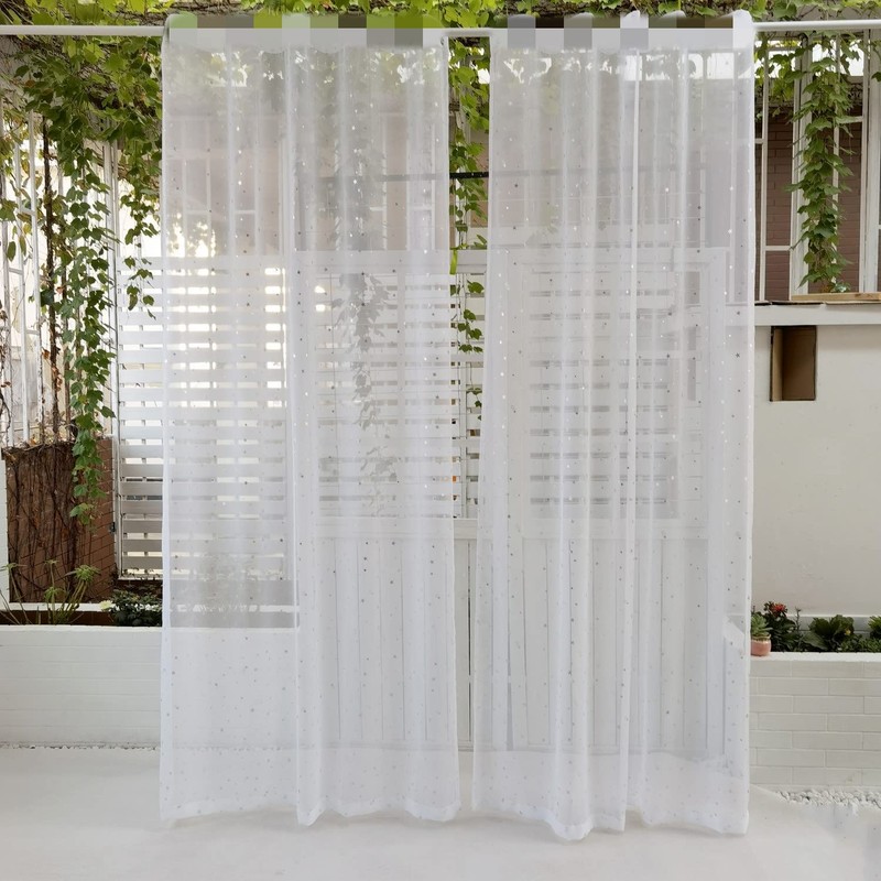 - 【Design】:The curtain features a beautiful star pattern design with silver stars printed on a white background to create a dreamy romantic atmosphere