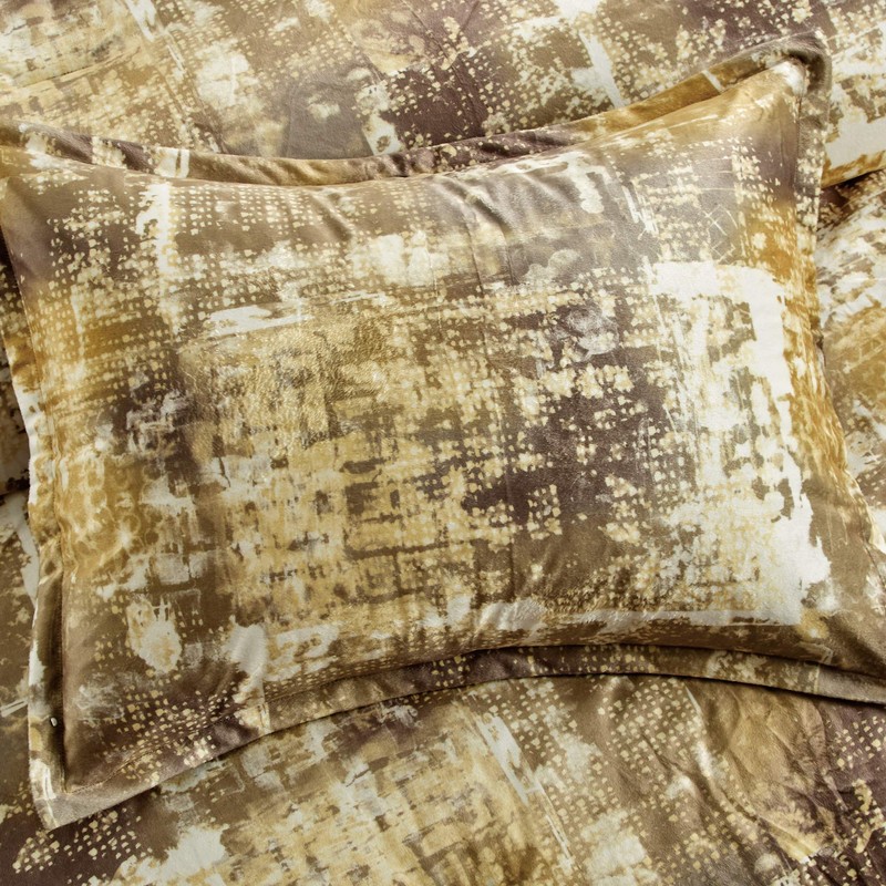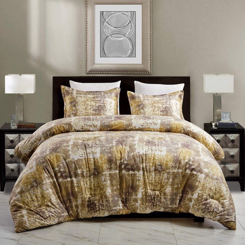 WPM WORLD PRODUCTS MART 3 Piece Gold Yellow Taupe Brown Queen Comforter Set Luxury Velvet Royal Bedding with Pillow Shams-Nish (Queen (3 piece))