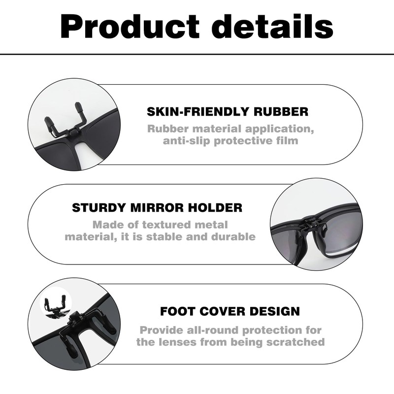 - 【 Flipped Design 】:clip-on sunglasses switches between clear vision and sun protection in an instant, making it ideal for driving, outdoor activities, or environments with changing light conditions. sunglass Clions reduces glare from water, roads, and reflective surfaces, enhancing visual comfort and clarity.