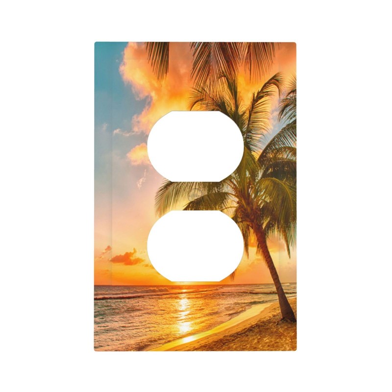 Wpshijia Outlet Covers Sunset Beach Palm Tree Seascape 1 Gang Duplex Light Switch Cover Plate Tropical scenery Decorative Wall Plates Electrical Switchplate Receptacle Cover for Bathroom Home Decor