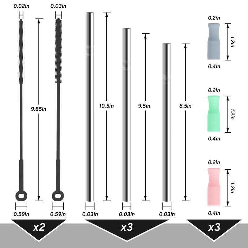 - INCLUDES SILICONE CLEANING BRUSHES: Set includes 2 pieces of silicone extra-long straw cleaning brushes, perfect for the length of metal straws. These reusable straws feature stainless steel construction for easy cleaning. Enjoy your drinks without worry!