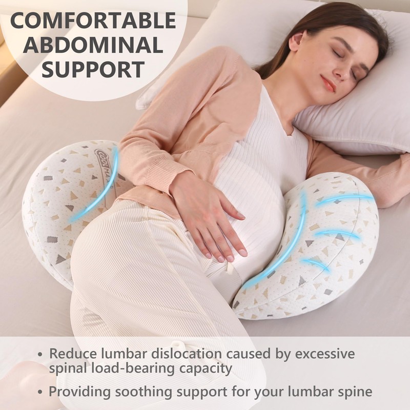• ERGONOMIC PREGNANCY PILLOW Combined with the ergonomic design, the curves of the wedge pregnancy pillow and body curve can be nested inside each other. This pregnancy pillow is designed for expectant mothers to relieve pregnancy discomfort. Our pregnancy pillows adapt to the body without gap, perfect support for growing stomach, back, hips and relieve pregnancy pressure.
