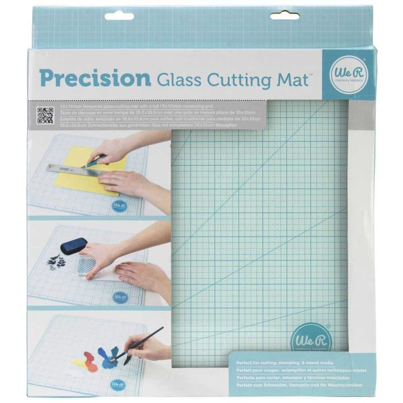 - PROTECT YOUR WORK SURFACE: The Precision Glass Cutting Mat by We R Memory Keepers is a durable 14x14-inch tempered-glass cutting mat that will protect your work surface when you're working with crafting cutting tools, stamps, hot glue, paint, and so much more!