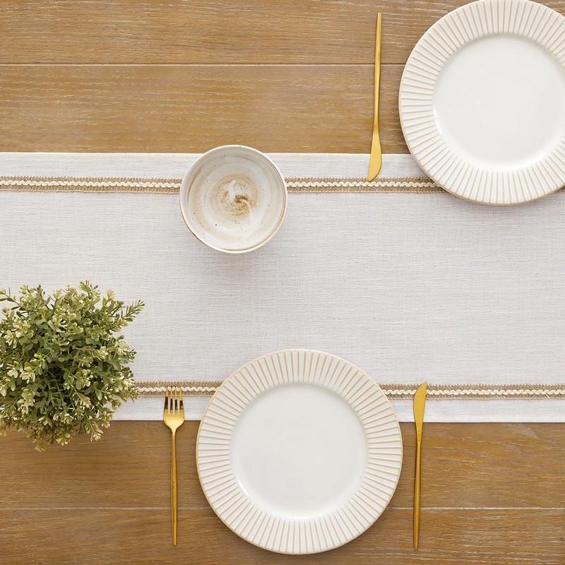 - Natural jute lace sewn onto the linen background, this elegant design linen will increase the charm of your table. Moderate thickness and sturdy, good for everyday use.