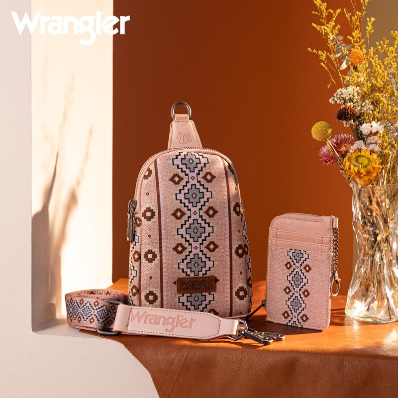 Wrangler Crossbody Bag with Card Wallet Aztec Sling Bag Purse Set WG2205-210WPK