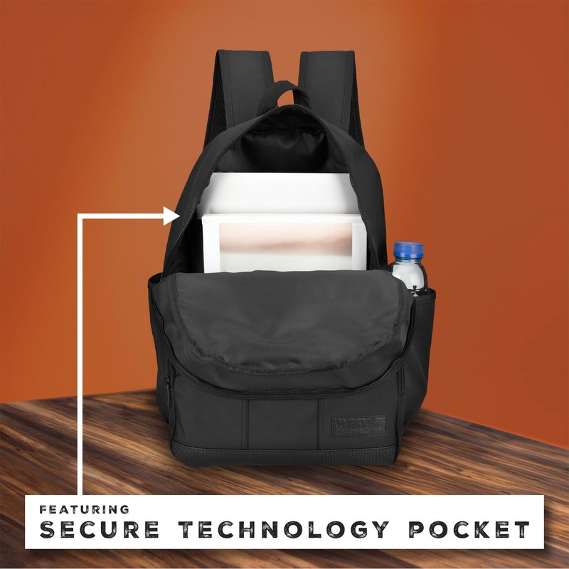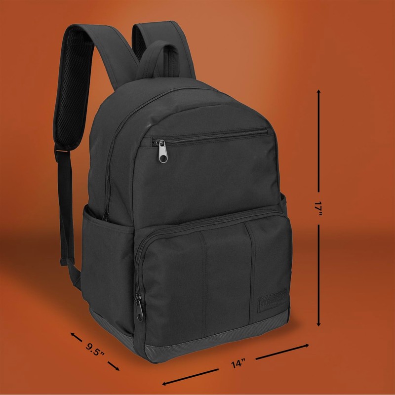 Wrangler Industry Backpack Classic Logo Water Resistant Casual Daypack with Padded Laptop Notebook Sleeve (Black)