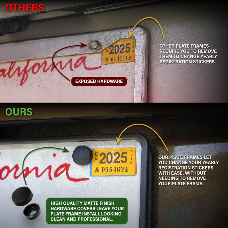 - ✔️《 OEM FITMENT 》 Manufactured in Taiwan with excellent quality. Molded to fit standard License Plate to meet your upgrade and replacement needs. Installation is quick and easy. No Need to Remove License Plate Frame to Stick/Put your Yearly Tags! Like older designed license frame that needs to be removed yearly.