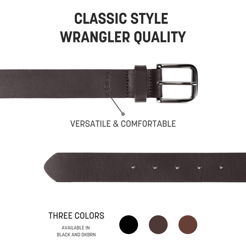 - Classic style makes a bold statement with this great Wrangler belt. This Full Grain Leather belt adds a great kick to any casual attire and is best worn with jeans or khakis and casual shoes. Enjoy the Wrangler handcrafted quality of this casual belt.