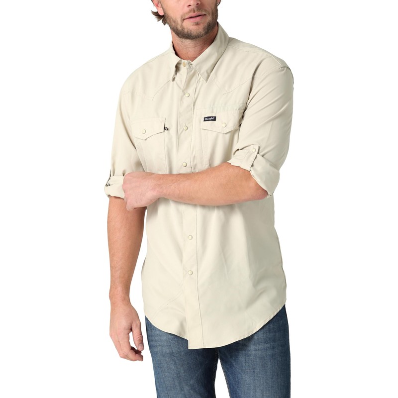 Wrangler Mens Performance Classic Fit Snap Button Down Shirt, Overcast, Large US