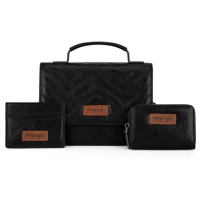 Wrangler Mini Crossbody Purses for Women 3 in 1 with Strap Quilted Small Top Handle Bag 3Pcs Sets Flap Handbag with Card Wallets WG3-0056BK