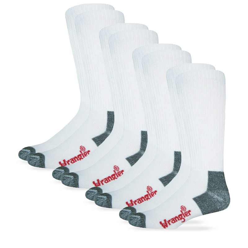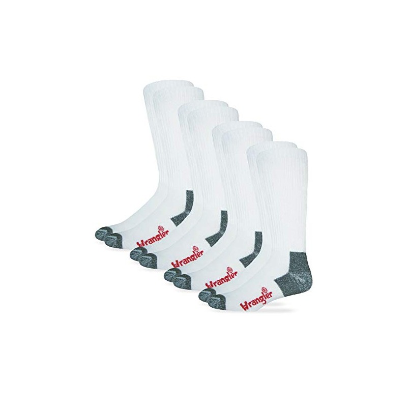 Wrangler Riggs - Calcetines de algodón para hombre, sin encuadernación, con puntera suave, paquete de 4 pares, Blanco, Large