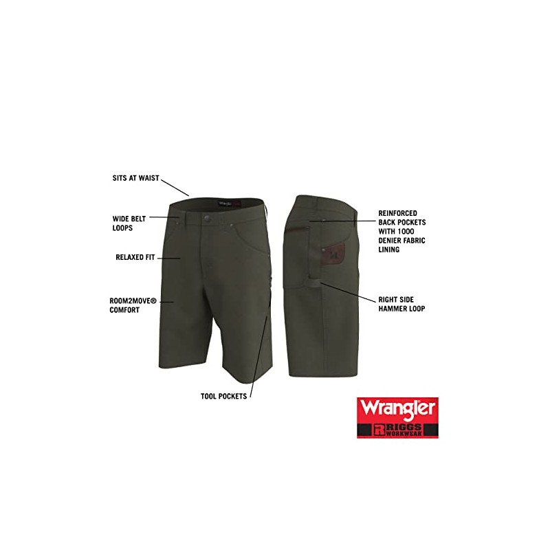Wrangler Riggs Workwear Men's Ripstop Carpenter Short, Loden, 40
