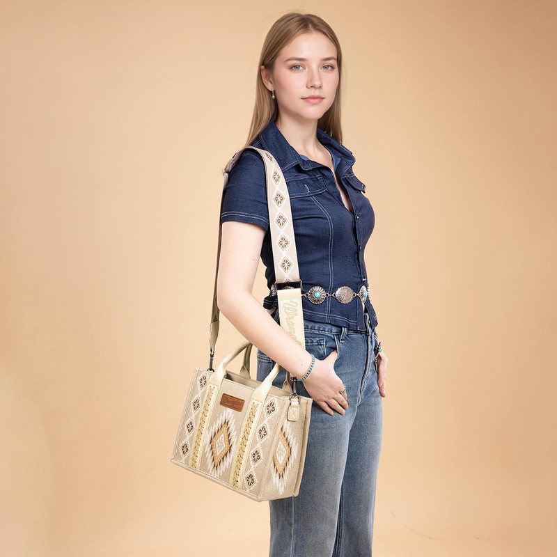 Wrangler Tote Bag for Women Western Purse and Handbag Aztec Shoulder Bag for women Medium Satchel Handbags Womens Purse with Pocket and Zipper Causal canvas bag with Strap AR-WG2208-8120STN
