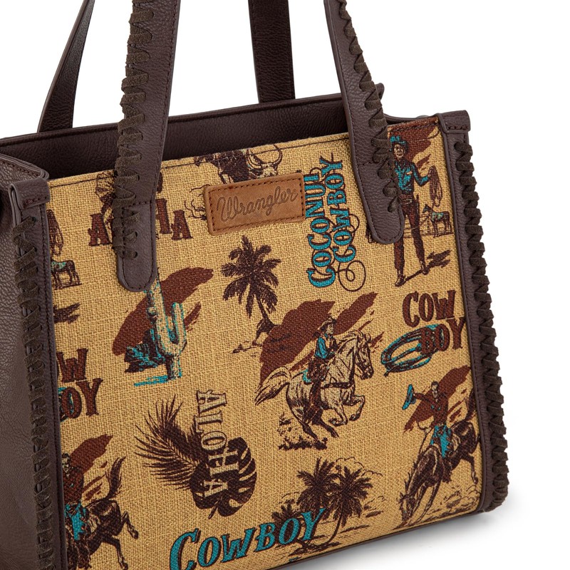 Wrangler Tote Bag with Zipper Western Handbags for Women Cowboy Print Canvas and Synthetic Leather with Crossbody Strap WG60G-8317DK-YL