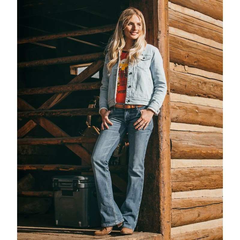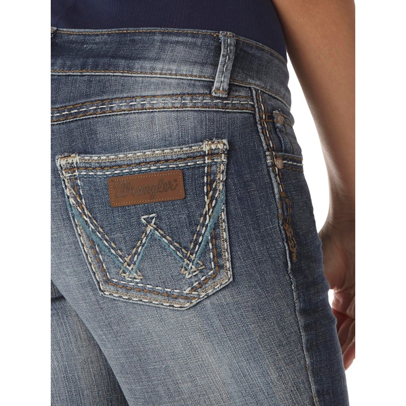 - CLASSIC EMBELLISHMENTS. This boot cut jean is finished with our Wrangler “W” stitching on the back pockets and a Wrangler logo patch. Maintain that effortless classic style with a touch of retro.