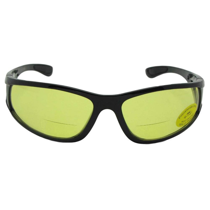 Wrap Around Non Polarized Yellow Lens Bifocal Sunglasses B131 (Shiny Black Frame, 2.50)