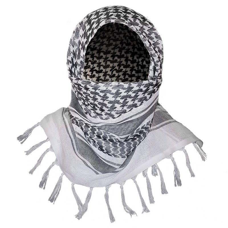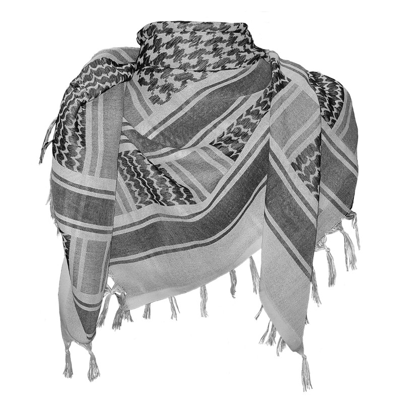 • ORIGINAL SCARF DESIGN: Made from 100% cotton and adorned with original Arabic patterns in black, this scarf is also referred to as a Shemagh or a Kuffieh, frequently worn by Palestinians and favored by military and law enforcement personnel.