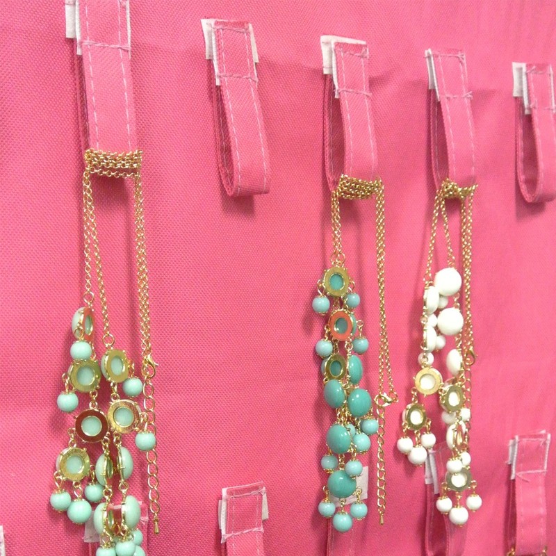 Wrapables 28 Zippered Pockets Hanging Jewelry Organizer with 21 Holding Loops, Pink