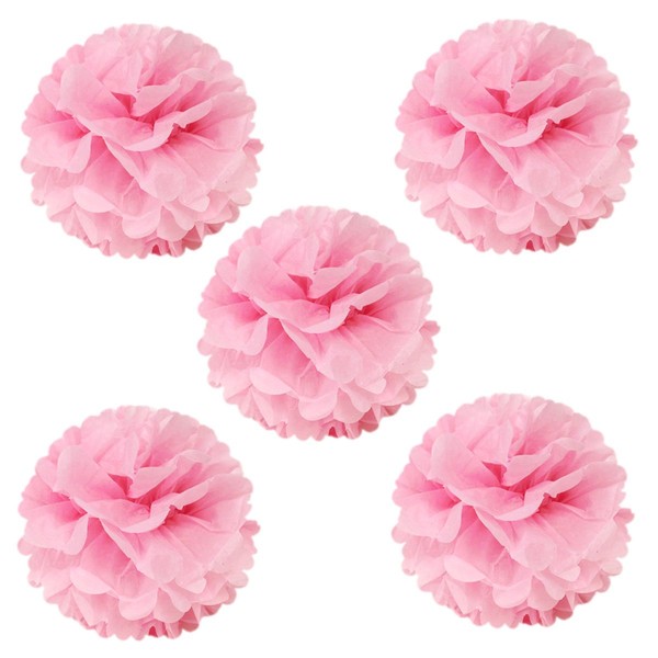 Wrapables A67638c Set of 5 Tissue Pom Poms Party Decorations for Weddings, Birthday Parties, Baby Showers, and Nursery Decor, Pink, 8"