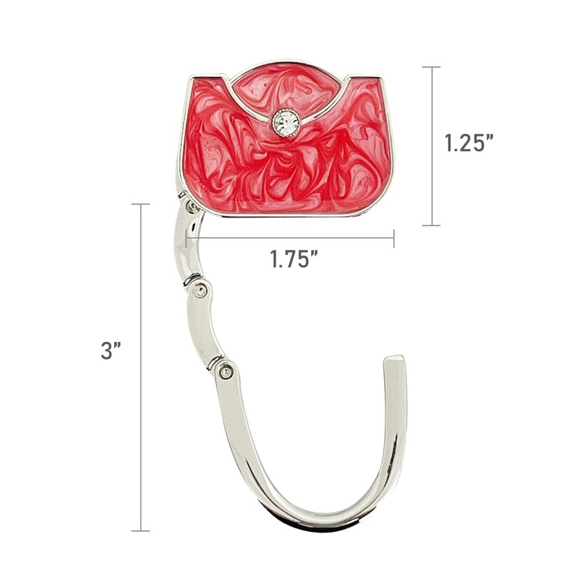 - Material: Zinc Alloy, Rubber, Rhinestones (select purse hook hangers).