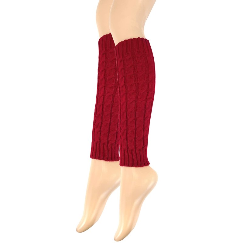 Wrapables Women's Cable Knit Leg Warmers, Burgundy