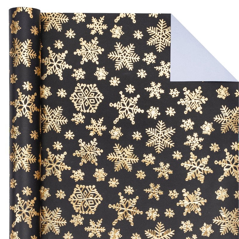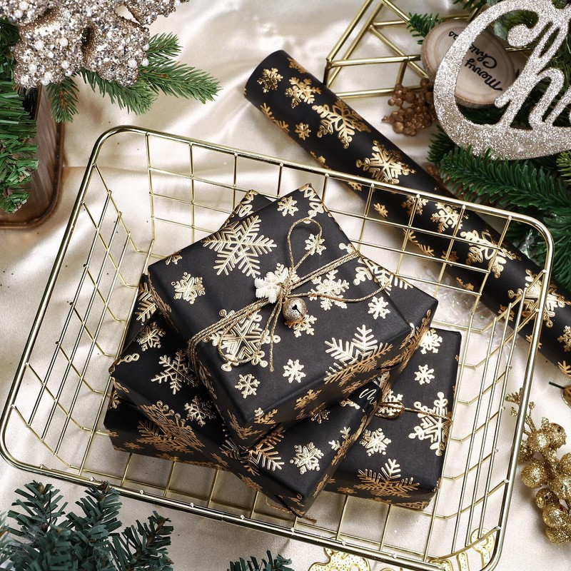 - DESIGN: The gold and black Christmas snowflake design with 3D embossed will make your gift wrap more textured, stylish, yet special.