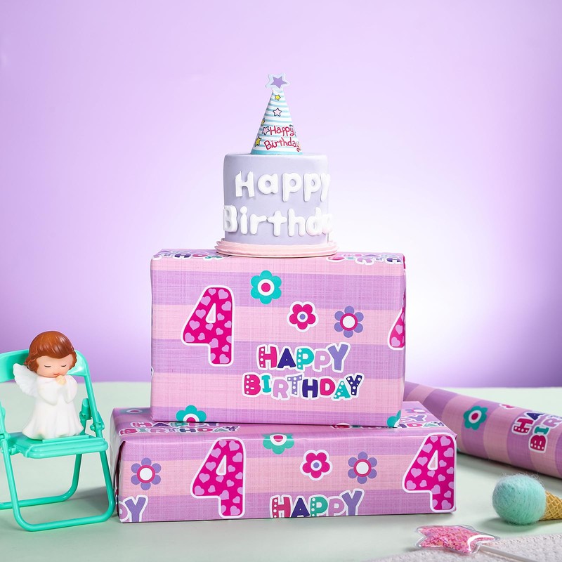 - DESIGN: 4th birthday design, "Happy birthday" lettering and floral printed on pink stripes, will make your gift special and shining.