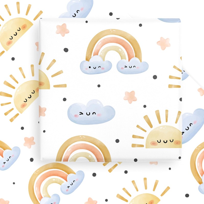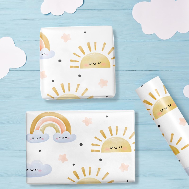 WRAPAHOLIC Baby Shower Wrapping Paper Sheet - 6 Sheets Smile Little Sun and Rainbows Design Folded Flat for Kid's Birthday, Party - 19.7 Inch x 27.5 Inch Per Sheet