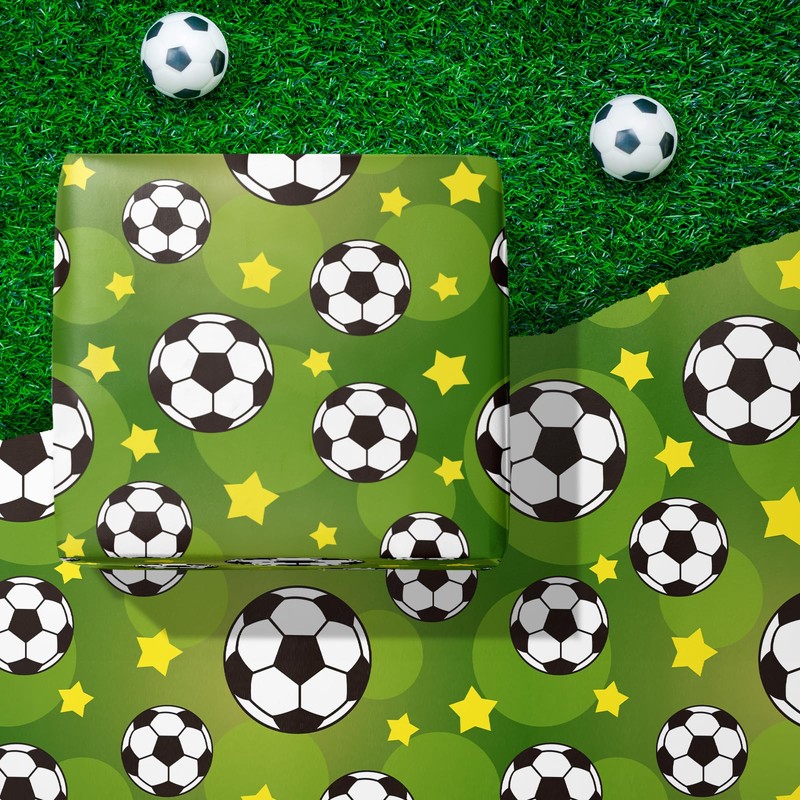 WRAPAHOLIC Football Wrapping Paper Roll - Mini Roll - 17 Inch x 9.8 Feet - Sports Soccer with Stars Design, Perfect for Birthday, Party, Holiday